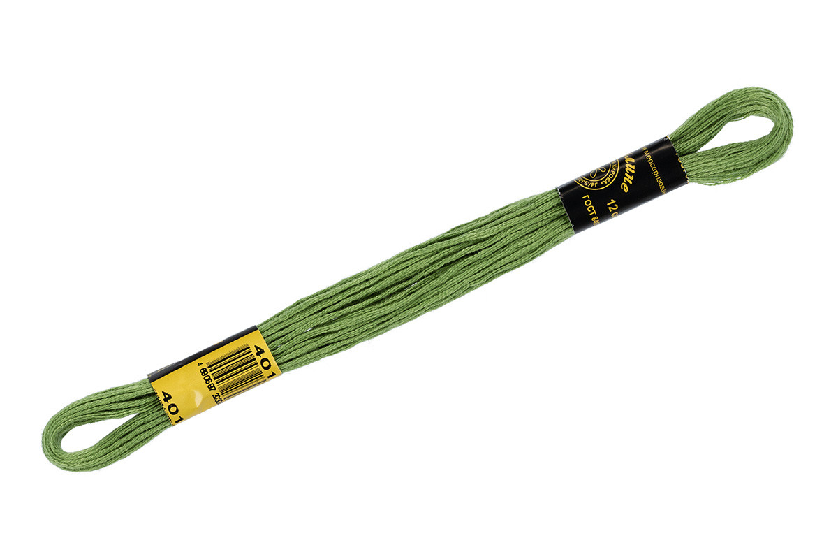 Нитки для вышивания "ПНК им. Кирова" мулине 100% мерсеризованный хлопок 8 м №4010 травяной