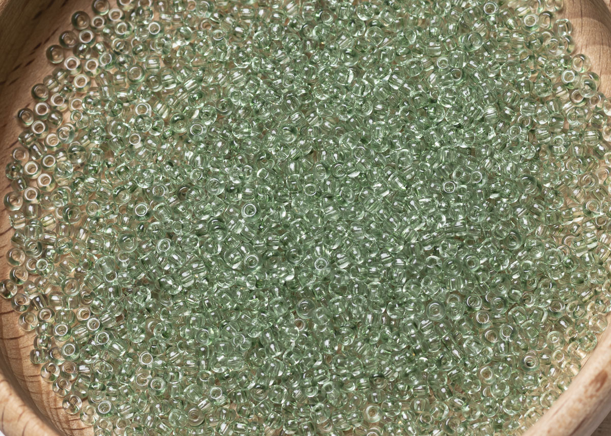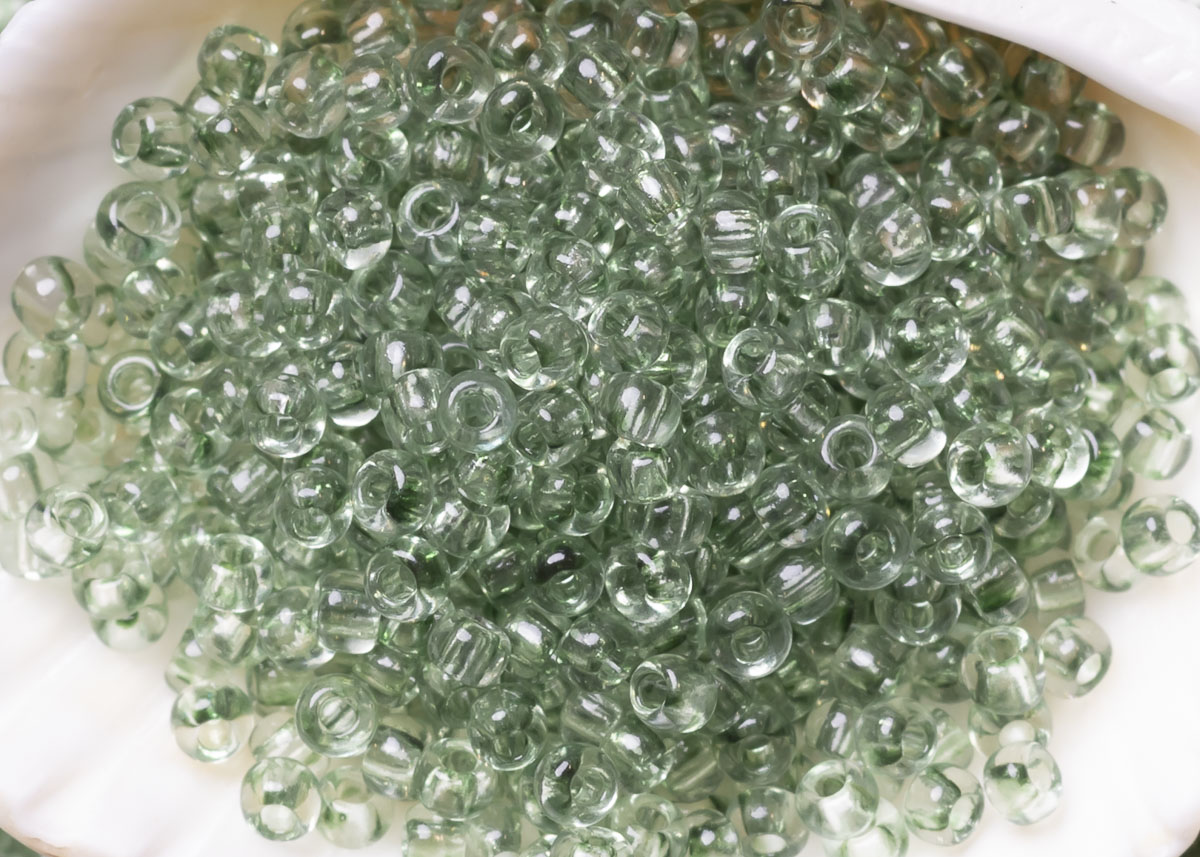 Бисер Чехия круглый 10/0 50 г 01263 прозрачный бледный дымчатый зеленый зольгель окрашенный