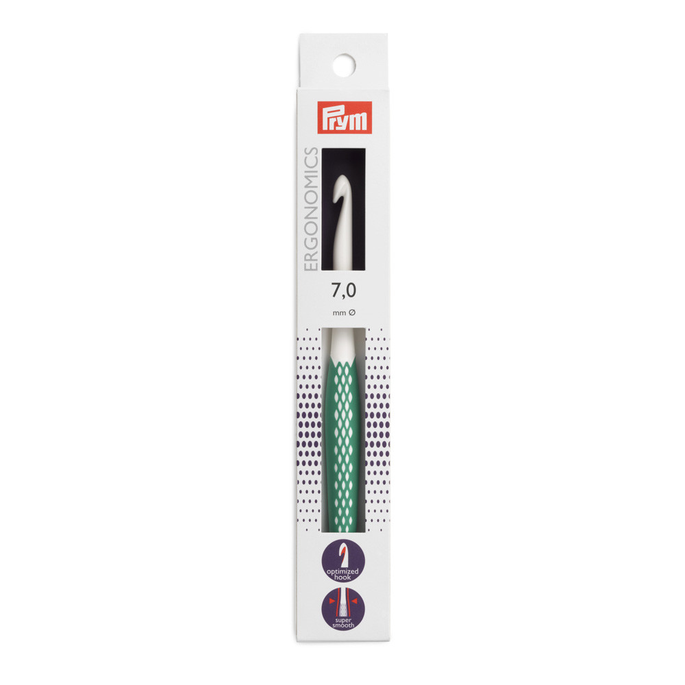 Для вязания " PRYM" 218489 крючок для вязания Ergonomics пластик d 7. 0 мм 17 см в картонной упаковке темно- зеленый